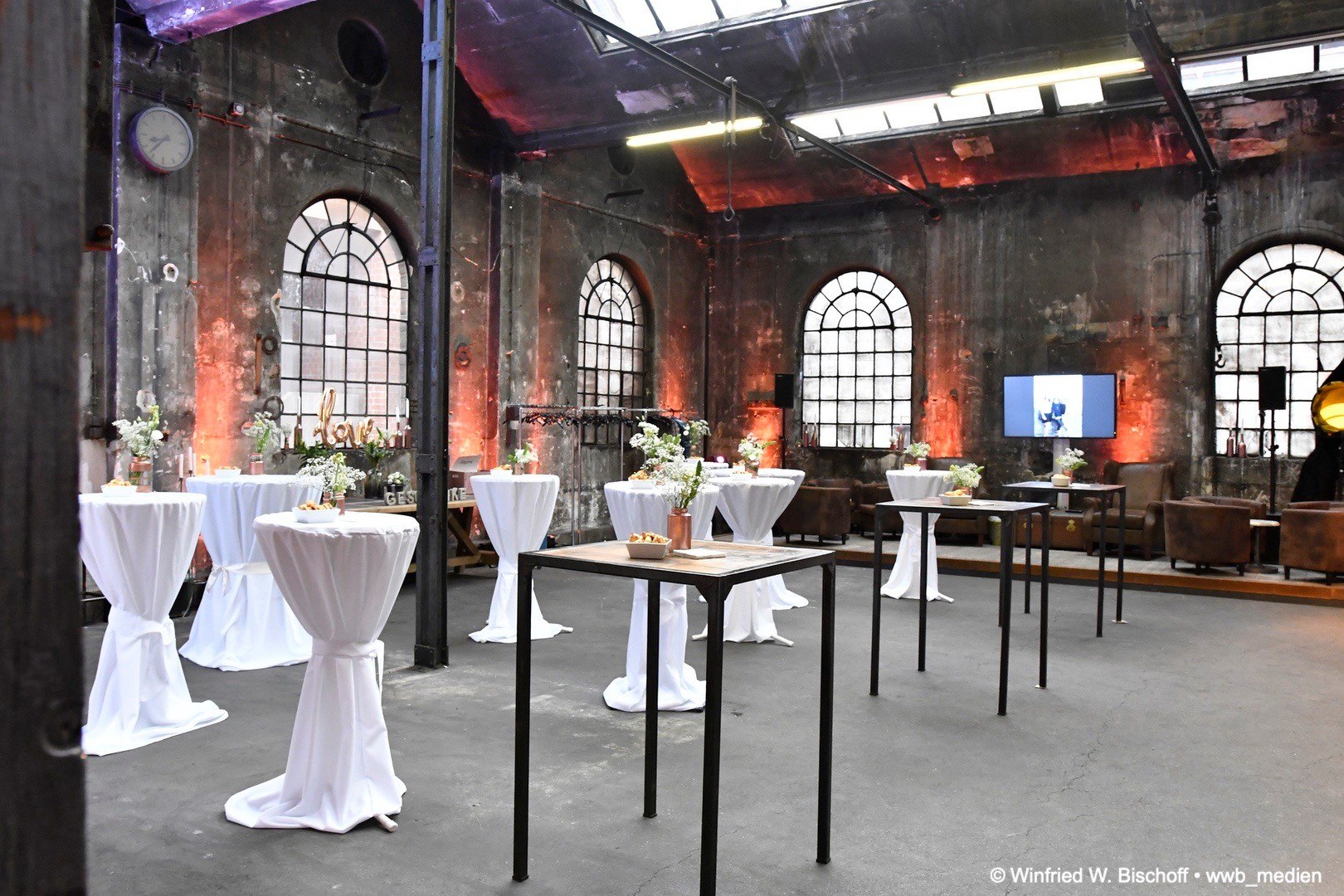 Alle Bereiche des Areals, wurden mit hochmoderner Technik ausgestattet und sind denkmalgeschützt aufbereitet– von der Lehrlingsschmiede, welche bis heute in der Amboss Lounge wiederzufinden ist, bis hin zu großzügigen Veranstaltungsflächen, die bis zu 2.300 Gäste willkommen heißen.
