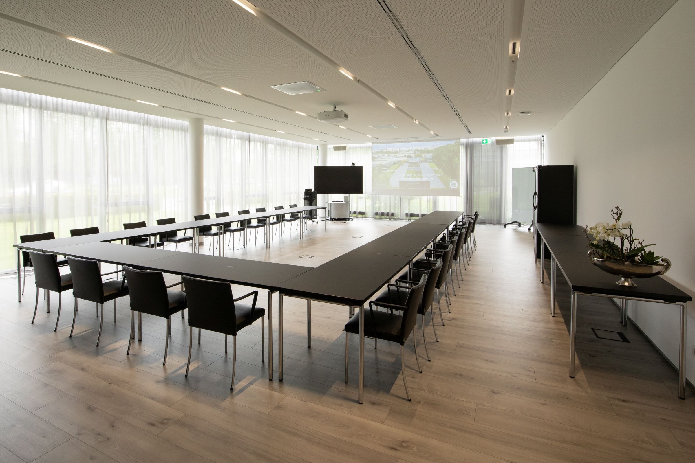 roadshows or cultural events, the Mercedes-Benz Customer Centre Sindelfingen enables tailor-made staging thanks to the perfect symbiosis of elegance and functionality as well as a backdrop that transforms events into an unforgettable experience.